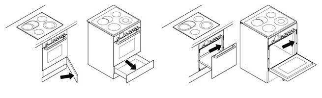 Духовка и плита имеют точно такие же наклейки, но они находятся внутри духового шкафа, либо же с внутренней стороны панели, которая располагается над шкафом. Там будут технические характеристики, которые относятся к плите.