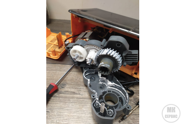 Отломались зубья шестерни. Из-за этого как раз таки мясорубка и прокручивает. Требуется замена шестерни.